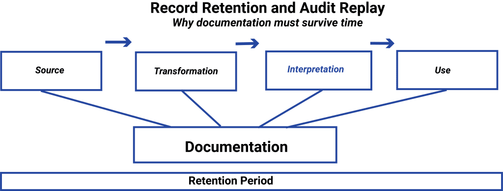 Data collected for one purpose may later be repurposed informally. Derived outputs may be treated as objective facts. Internal analyses may migrate into client-facing materials without adequate review. In each case, the underlying data may be sound, but governance breaks down as meaning accumulates.